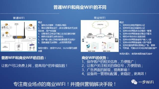 在人手一部智能机的时代,小城市、小城镇的企业Wi-Fi市场需求非常大,但现状是那里的市场还是一片空白,很多人流密集的餐饮、购物、娱乐、酒店等场点还在用简单的家用路由器提供Wi-Fi网络,用户上网体验非常差。