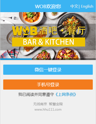 WOB酒吧 —— Wi-Fi热点登陆效果图